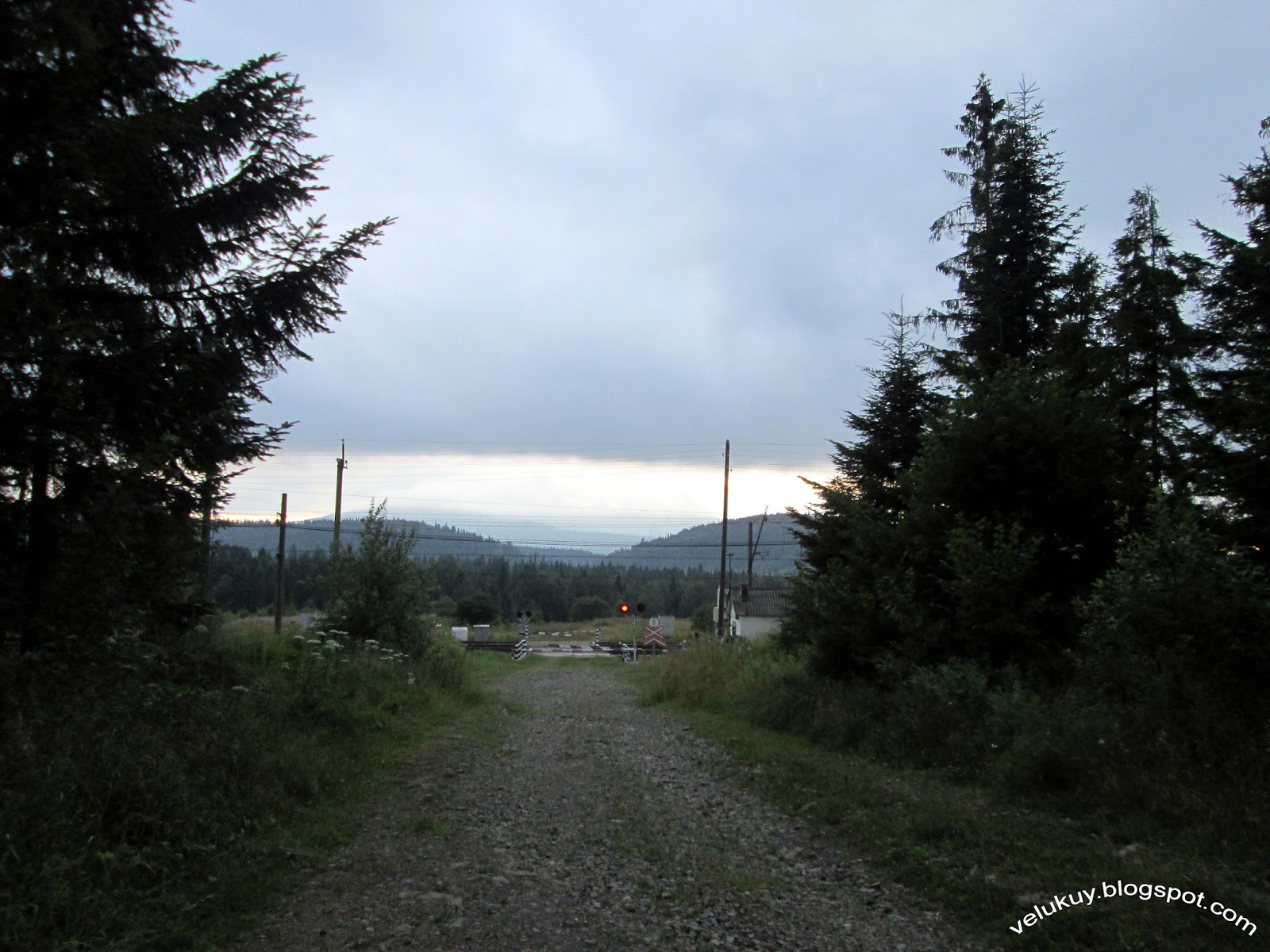 А гори так само, як вранці залишались в хмарах, лише коли вже в Сянках підійшов до переїзду, то далеко, десь над польськими Карпатами, побачив просвіт в хмарах.